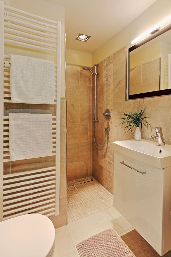 Unsere Badezimmer verfügen alle über eine Dusche, es gibt keine Badewanne